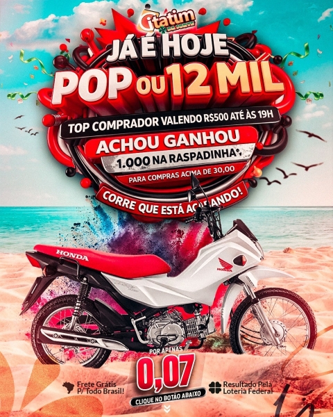 COM APENAS 0,07 VOCÊ CONCORRE A UMA POP BRANCA 2026 OU 12 MIL NO PIX! SORTEIO VÁLIDO PELA LOTERIA FEDERAL DO DIA 07 DE MARÇO !!!