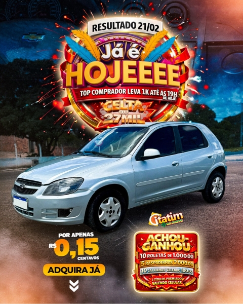 COM APENAS 0,15 VOCÊ CONCORRE A UMA CELTA VHC COMPLETO OU 27 MIL NO PIX! SORTEIO VÁLIDO PELA LOTERIA FEDERAL DO DIA 21 DE FEVEREIRO !!!